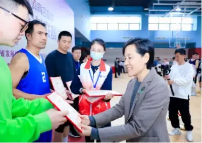 2023-03-15 7 9613月11日,由中国体育彩票资助,江苏省体育局指导,江苏省发展体育基金会和江苏省篮球运动协会主办,南京体育产业集团和南京市双闸街道承办,南京龙江体育投资管理有限公司执行的“第四届江苏省社区体育合家欢—社区篮球公益联赛(决赛)”在南京市建邺区双闸街道文化体育活动中心成功举办,江苏省体育产业指导中心副主任、江苏省发展体育基金会常务副秘书长李薇、江苏省发展体育基金会副秘书长张爱英、南京体育产业集团副总经理王璎、南京体育产业集团综合办公室主任缪晨虹、南京龙江体育投资管理有限公司董事长、总经理周培源等领导出席活动并颁奖。