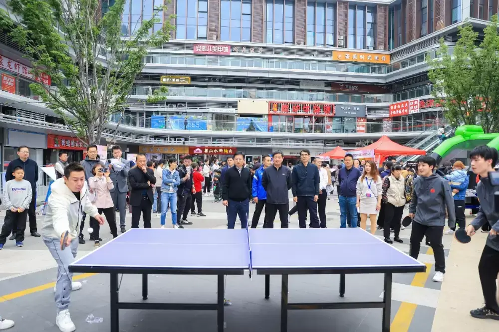 2023-04-23 7 8294月22日下午,由江苏省体育局、南京市体育局指导,江苏省发展体育基金会主办,南京体育产业集团、南京市玄武区文旅局(体育局)、南京体育学院乒羽学院、南京市玄武区孝陵卫街道协办的“江苏体彩公益社区行—2023第五届江苏省社区体育合家欢”活动在南京市玄武区龙湖紫金Mall的户外广场正式启动!江苏省体育局一级巡视员王志光,南京市体育局副局长朱华林,南京体育产业集团董事长章小奇,江苏省发展体育基金会常务副秘书长李薇以及玄武区文旅局(体育局)、玄武区孝陵卫街道等相关单位领导出席活动。