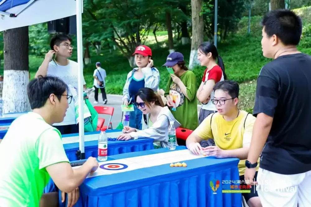 本届定向赛在点标任务的设置上将运动与年轻、时尚深度融合,不仅有投壶、沙包等大家熟知的趣味项目,也有飞盘、匹克球、迷你高尔夫、桌面冰壶、划船机等时尚休闲的运动项目,还定向邀请了南京大学、南京农业大学、南京林业大学、南京邮电大学、南京体育学院6所高校新生参赛,在比赛现场形成了一道道热闹且独特的风景线。