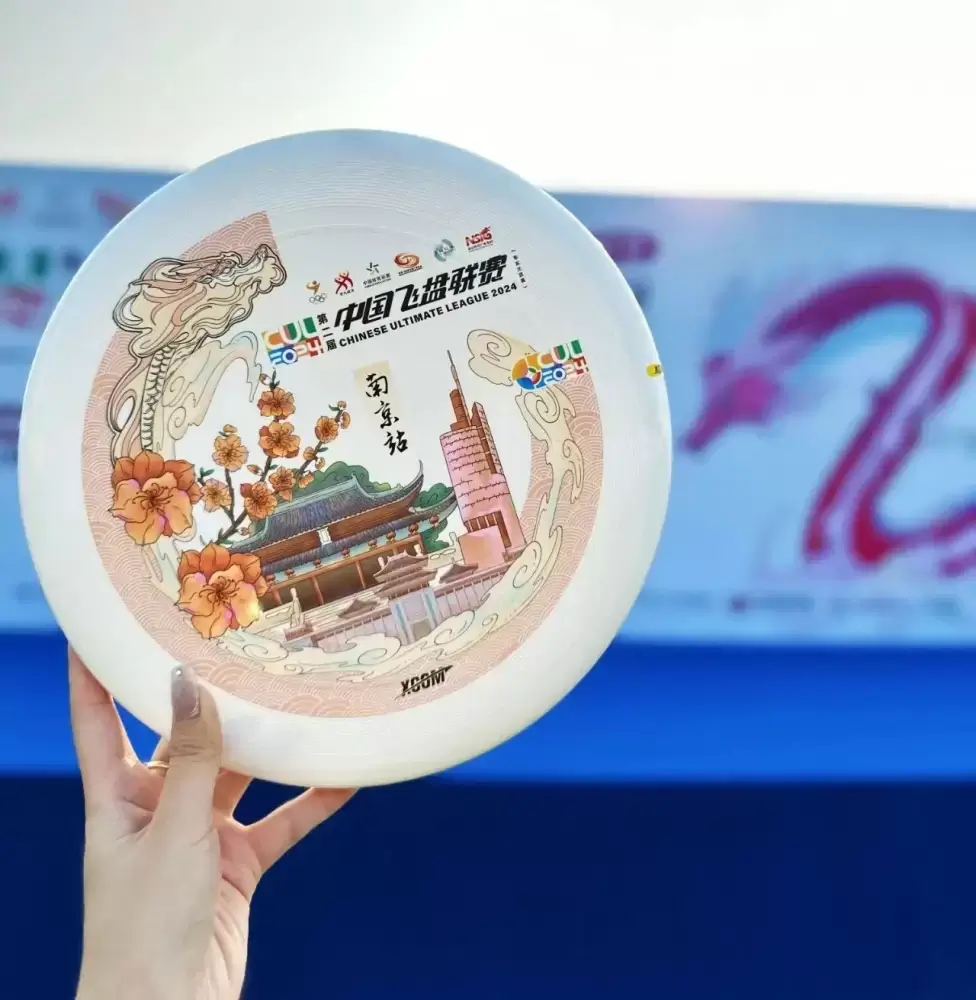本次赛事的专属纪念盘也是亮点之一,浓郁的手绘中国风将龙年、南京城市特色元素与飞盘运动相融合。梅花、南京博物院、南京夫子庙等展现独特城市气质的元素,与时尚的飞盘相结合,灵动中传递着深厚的城市文化底蕴。