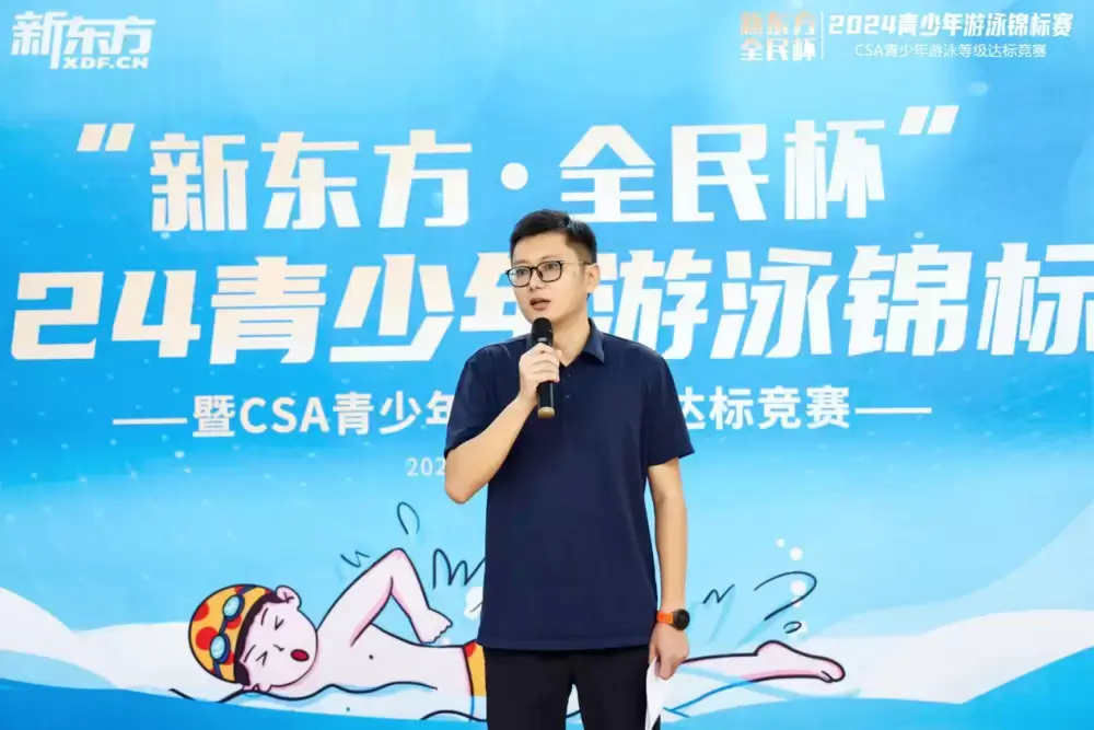 开幕式上,全民公司执行董事许晨飞发表致辞,他表示公司一直致力于推动全民健身运动,特别是青少年体育的发展。此次与新东方的跨界合作,是我们双方资源共享、优势互补的生动体现,希望通过这次比赛,让更多的青少年感受到游泳项目的魅力,同时也为他们提供一个展示自我、挑战自我的舞台。