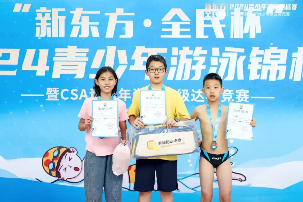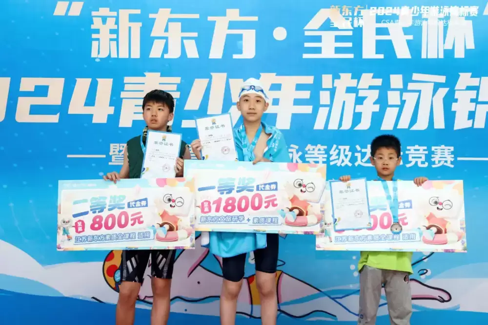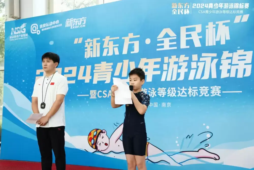 2024-09-21 11 4259月21日上午,由南京体育产业集团指导、南京全民健身中心有限公司(以下简称“全民公司”)主办,南京新东方文化艺术发展有限公司独家赞助冠名,江苏省红十字救援队提供支持的2024“新东方•全民杯”青少年游泳锦标赛暨CSA游泳等级达标竞赛在南京信息工程大学“水云方”游泳馆开赛。来自全南京市近200名青少年在泳池中劈波斩浪、奋勇争先、逐梦而行。