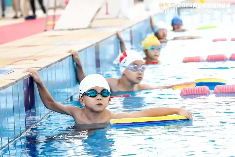 随着领导嘉宾的鸣枪宣布,比赛正式拉开帷幕。青少年游泳健儿们在泳池中展开了激烈的角逐,他们身姿矫健,全力以赴,每一次划水都凝聚着汗水与努力。观众席上,家长和教练们的加油声此起彼伏,为孩子们注入动力。
