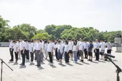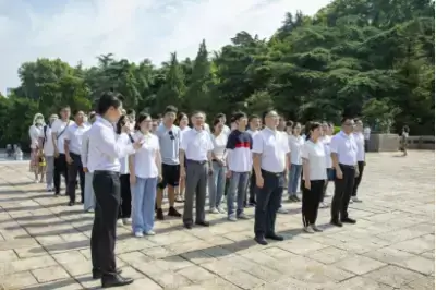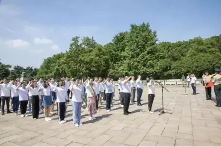 苍松翠柏掩映下的雨花山冈,烈士纪念碑高高耸立。纪念碑前,“宁死不屈”的革命烈士塑像昂首屹立,象征革命精神薪火相传的“长明灯”在鲜花簇拥下熊熊燃烧。伴随着深情的《献花曲》,礼兵抬起花篮,缓步走向纪念碑,将花篮摆放到纪念碑前,集团纪委书记、党委委员滕岷军上前整理花圈挽联,全体同志向烈士纪念碑三鞠躬,深切缅怀为民族解放、国家富强和人民幸福英勇献身的革命烈士。随后,集团党委副书记王虹燕带领全体人员面对鲜红党旗,举起右手,握紧拳头,重温入党誓词,誓言铿锵有力,信念永不磨灭,把对党忠诚、为共产主义奋斗终身的坚定决心融入其中。仪式最后,全体人员缓步绕行,瞻仰烈士纪念碑,向革命烈士致以最崇高的敬意。