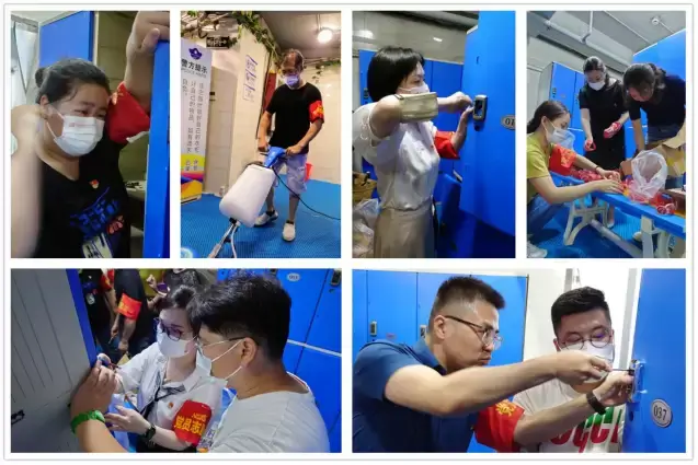 晚上9时30分,待游泳馆闭馆客户离场后,参加活动的全体党员转换为志愿者的身份,来到游泳馆男女更衣室进行志愿服务,更换更衣室柜锁心以及打扫场馆卫生。高温天气下,大家没干多久,个个大汗淋漓,但都干劲十足,活动一直持续至深夜11时30分才结束,在党员志愿者们的共同努力下,共完成102个更衣柜换锁,协助完成游泳馆地面清扫工作,真正做到深入一线“为群众办实事”。