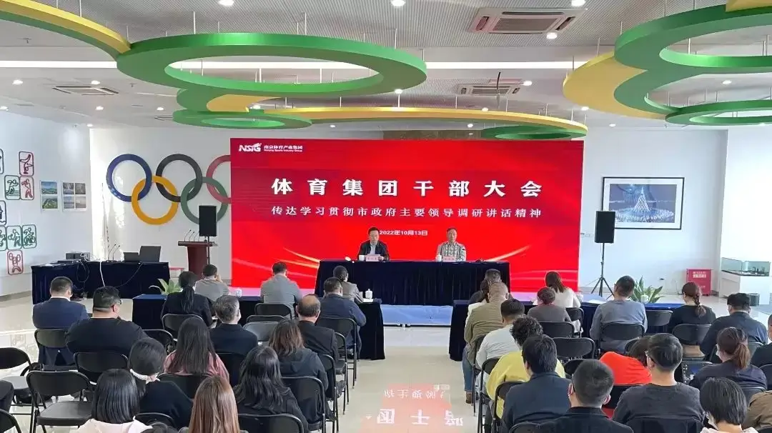 2022-10-16 10 15810月13日,市体育集团在青奥体育公园召开集团干部大会,传达学习贯彻市政府主要领导调研讲话精神,全面部署集团大局工作,围绕冲刺全年目标任务提出具体要求。集团班子成员、各部门负责人及各子企业中层以上干部参会。
