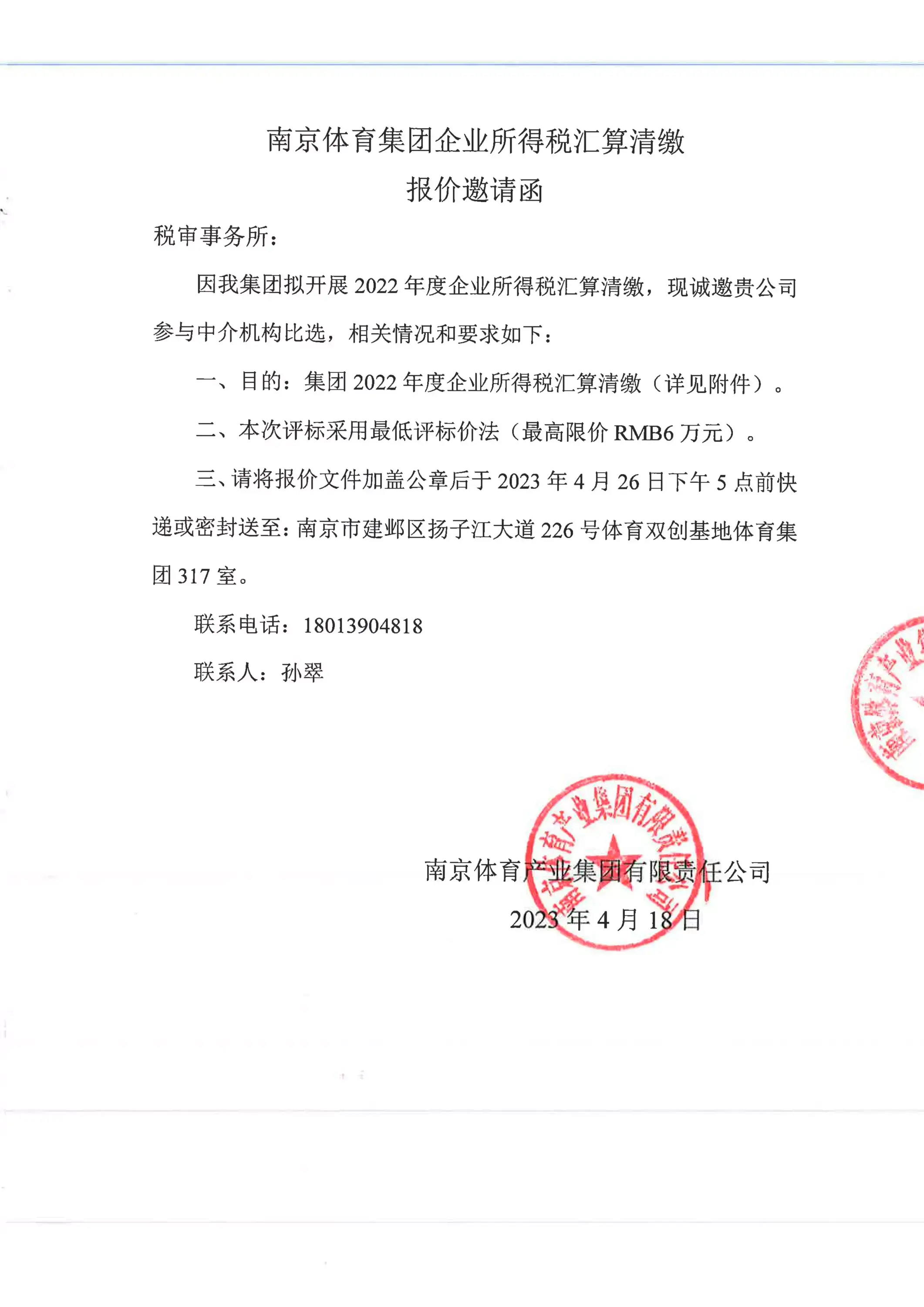 » 2022年度企业所得税汇算清缴税务审计比选报价邀请函