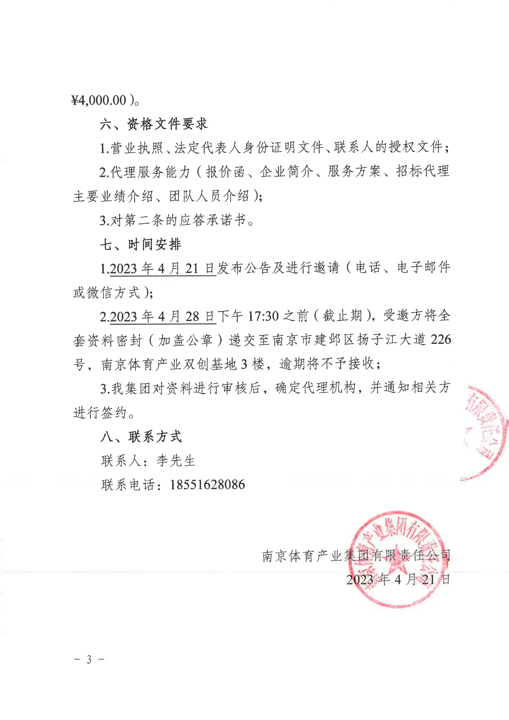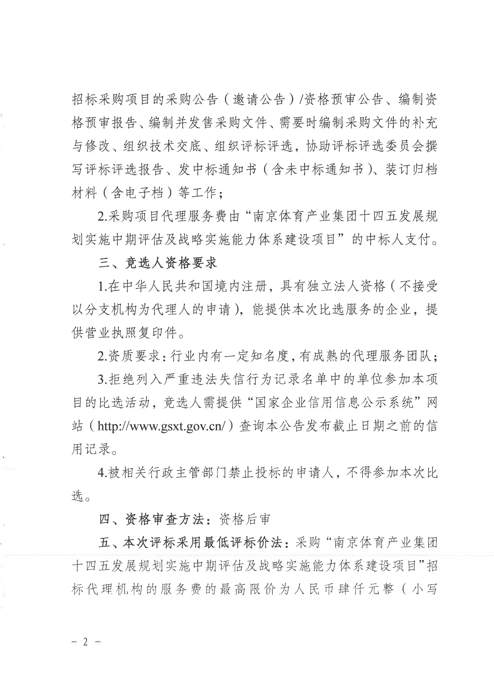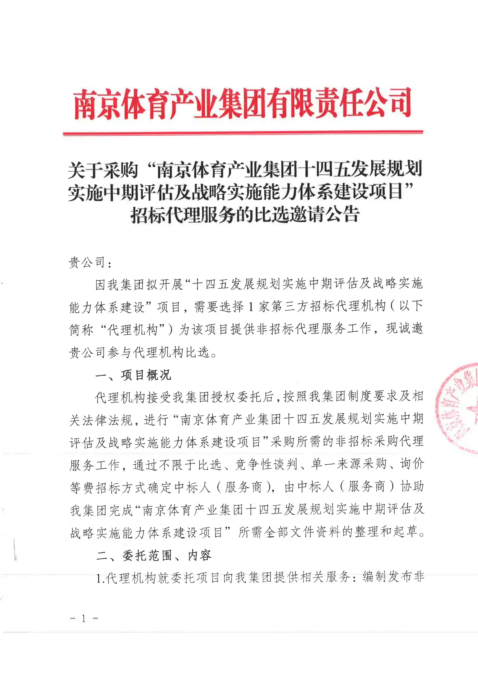 关于采购“南京体育产业集团2023年度经济责任审计项目中介机构选聘”项目招标代理服务的比选邀请公告