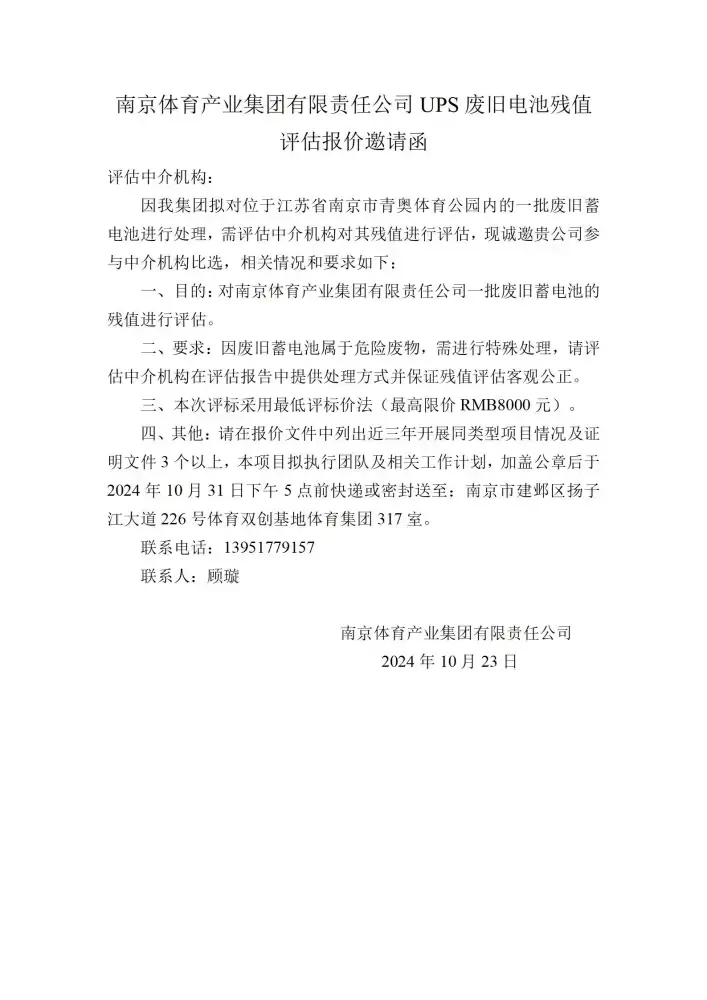 开云手机平台UPS废旧电池残值评估报价邀请函