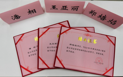本次培训,通过金农公司用户运营部的刘老师对于信贷部分、财务部分系统的专业讲授和耐心答疑,参加系统培训的3名员工已全部通过培训考核并取得证书。