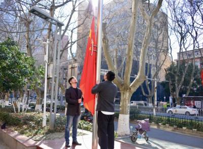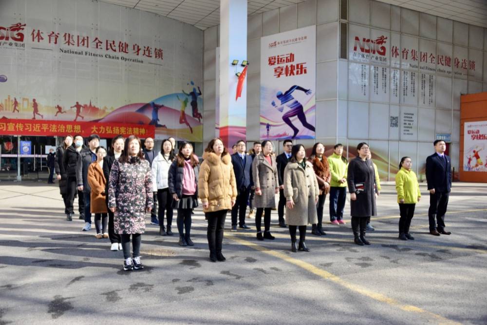 2021-02-19 5 6302021年2月18日上午,春节假期结束后第一个工作日,全民公司党支部在南京全民健身中心南广场举行了新年升旗仪式。全民公司、龙江文化公司、全胜兴物业公司员工代表30余人参加了升旗仪式。