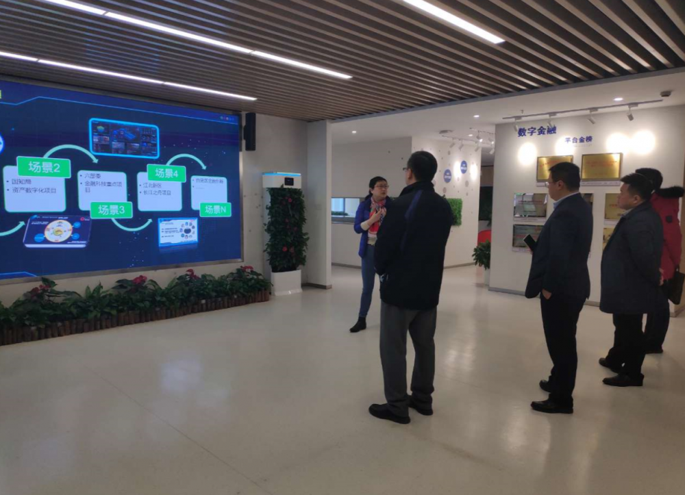 王鹏副总经理听取了数研院陈莹院长对高质量发展我市数字金融板块的相关介绍。南京数字金融产业研究院成立于2018年11月,由南京扬子国资投资集团与南京紫金投资集团共同出资设立,是基于南京市人民政府、南京大学、中国人民银行南京分行、中国人民银行数字货币研究所、江苏银行五方合作基础上的运营机构。研究院主要承接国家与地方重点金融科技项目,创建国际化金融科技专业孵化器,探索形成企业孵化与产业培育良性互动的新模式,致力于建设国家金融科技创新应用试验田、全国一流央行数字货币应用示范基地及国内领先数字金融产业高地。