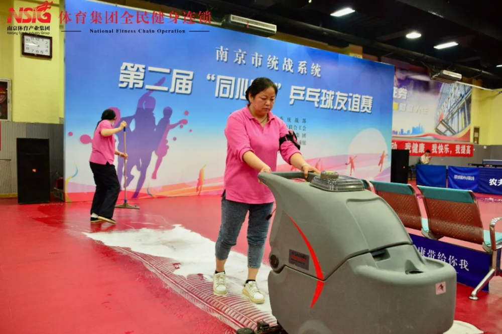 比赛前一天,比赛主场馆因正常对外运营,赛前场地布置工作要在晚上九点闭馆后才能开始,地面清洁、球台摆放、标识张贴……直到凌晨两点同志们才陆续离开球馆,仅仅五个小时后同志们再一次来到球馆为正式开赛做最后一次巡检。