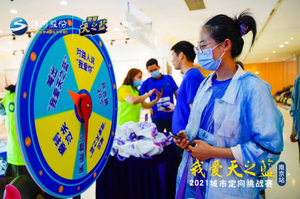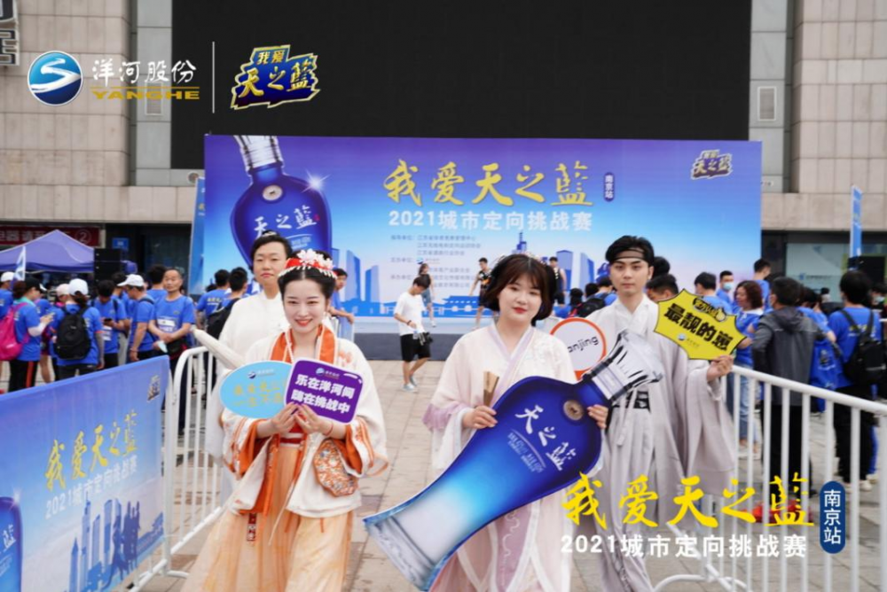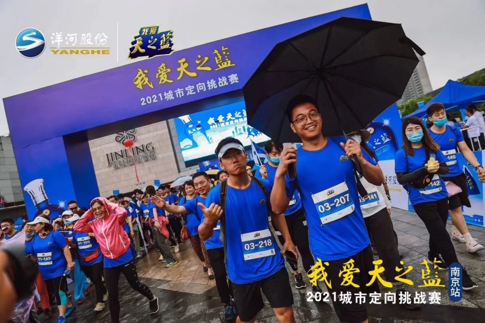 5月16日,由江苏省体育竞赛管理中心、江苏无线电和定向运动协会、江苏省酒类行业协会指导,江苏洋河酒厂股份有限公司(苏酒集团)南京市体育产业联合会主办,江苏新扬文化传媒有限公司、青奥产业南京有限公司承办的“我爱天之蓝2021城市定向挑战赛”在南京活力开跑。南京体育产业集团总经理程向阳、江苏省体育竞赛管理中心竞赛部部长张栓太、南京市体育产业联合会轮值主席曹畅、江苏省酒类行业协会酒类消费者分会秘书长邱建林、苏酒集团南京大区总经理张佑全出席活动开幕式。近1000位参赛选手身着统一服装,在建邺区万达广场汇聚成一片蓝色的海洋。![]()