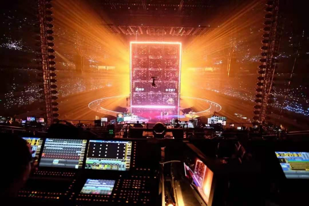 本次晚会采用水舞台和地屏舞台交替变换的双舞台设计,最引人注目则是舞台中央的“摩天大楼”设计。“摩天大楼”由多块大屏组成的格子间方块楼组成,楼中每一个格子都是一个直播间,快手达人则在直播间与线上观众进行互动。与其他电商晚会大屏小屏场景各自独立不同,快手616真心夜将直播间直接搬上舞台,观众可以看到晚会表演和直播带货同步进行,这样别出心裁的舞台设计成就了一份交互式的美感。![]()