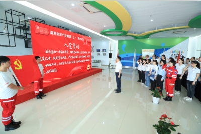 在集团党委书记、董事长章小奇带领下,全体党员紧握右拳,面向党旗庄严宣誓,铿锵有力的誓言响彻会场。