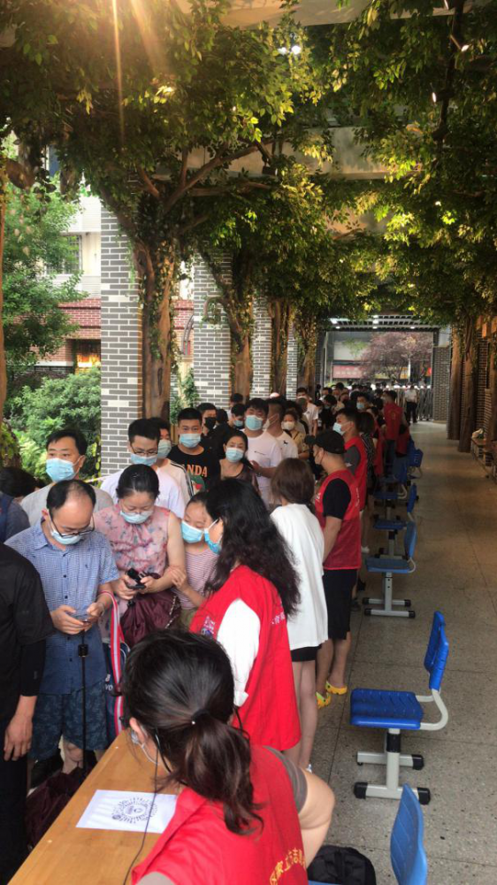 7月25日,25名党员志愿服务队成员根据江北新区统筹安排,再次前往江北新区浦口外国语学校高新分校体育馆内的核酸采集点,协助做好现场流线布置、分组、引导、答疑、二维码核验等工作,共协助完成附近2万余人次的核酸检测。![]()