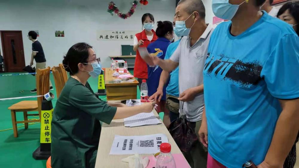 7月25日,刘薇同志在江宁淳化街道科苑社区,协助前来做核酸检测的居民做好流程解答、扫码预约、信息登记等工作,从傍晚一直忙到深夜。