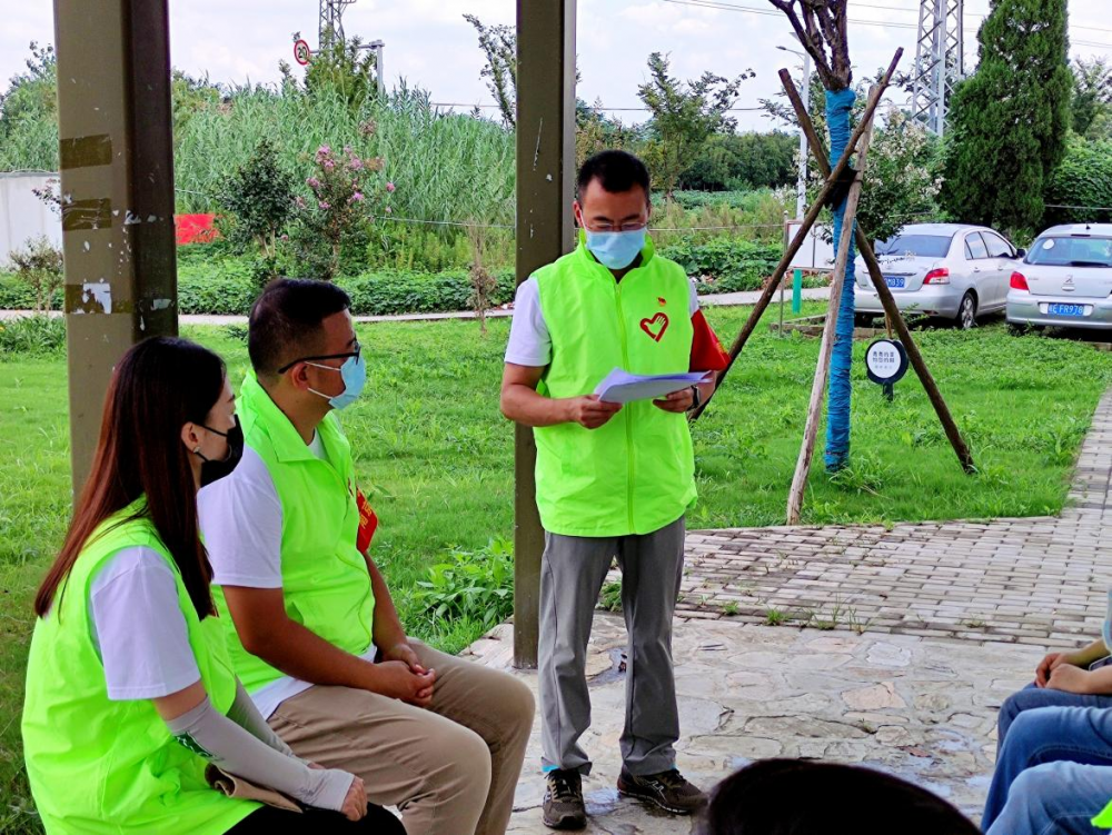 让党旗飘扬在防疫一线。8月14日傍晚,全民公司党支部在江宁区湖熟街道万安村东库村口,举行了一场别开生面的主题党日活动。