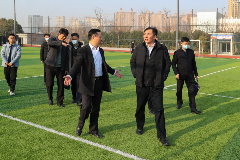 2021-12-24 12 69612月22日,市政府胡万进副市长以及市体育局、教育局、国资委、财政局、江北新区分管领导一行调研体育集团,并在实地考察体验体育集团自主研发建设的5G无人值守智慧球场后召开工作座谈会。签约单位领导南京体育学院党委书记朱传耿、江宁开发区管委会主任张会祺、苏交科集团总裁朱晓宁及相关企业负责人出席,市政府副秘书长吴秀亮主持会议。
