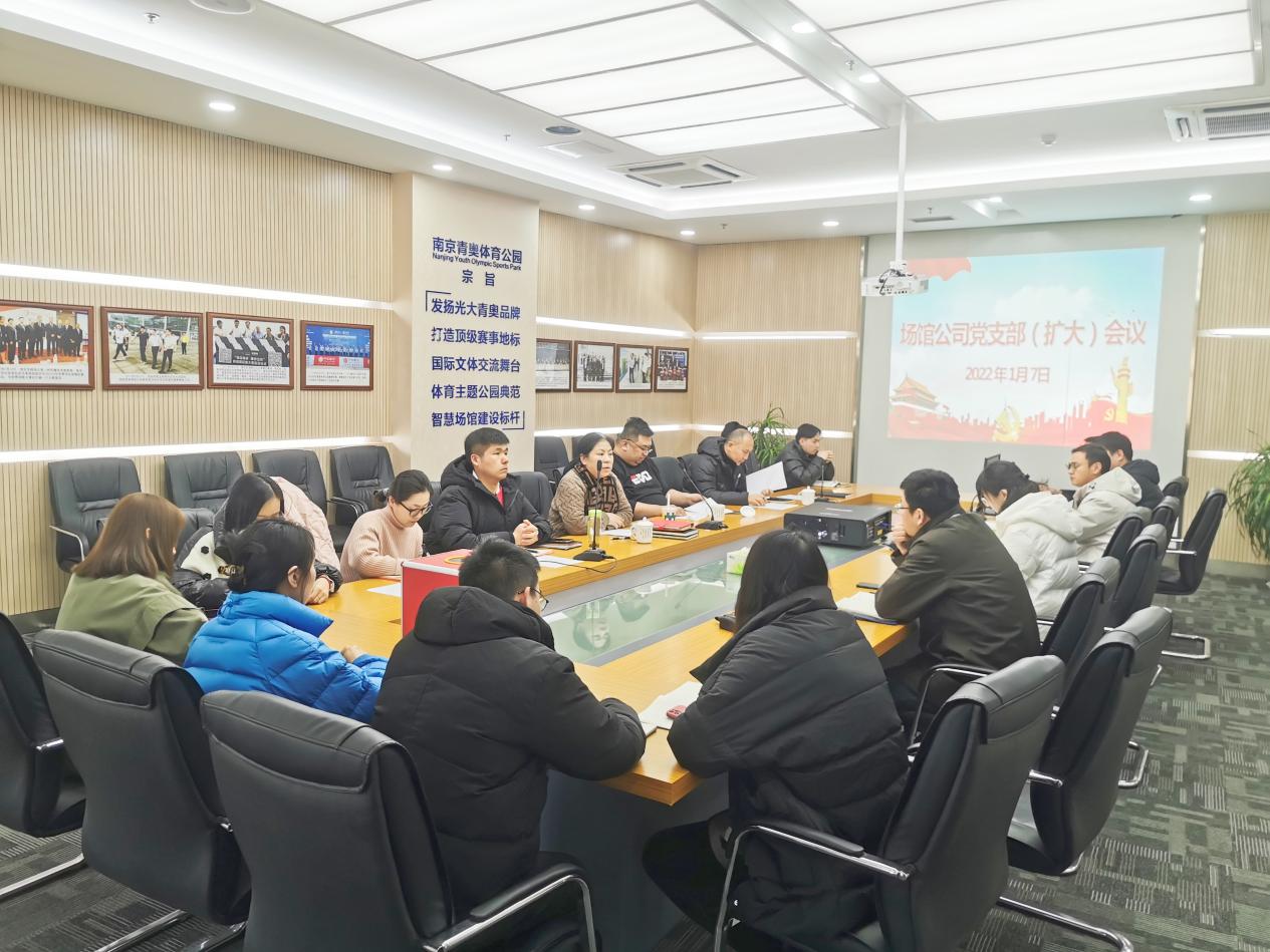 2022-01-10 2 6141月7日,场馆公司党支部(扩大)会在南京青奥体育公园中央管理平台召开,支部全体党员、公司班子成员及主管级以上人员参加本次会议。会议由公司党支部书记、董事长缪晨虹主持。
