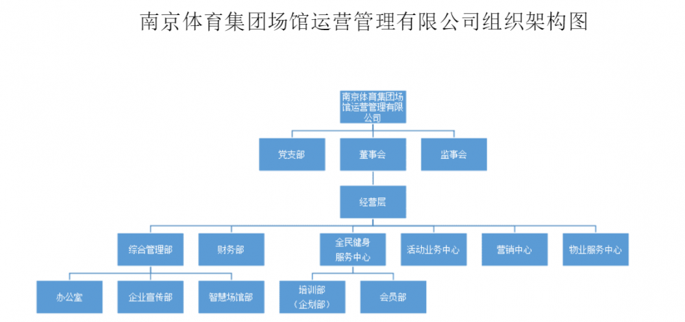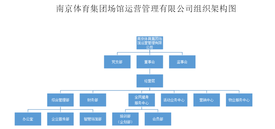 三是优化管理体制和架构。经公司总经理办公会研究、支委会审议和董事会批准,从2022年1月起,对场馆公司原有组织架构、各部门职能分工和领导班子分工进行了优化调整。新的组织架构详见附图,公司下设综合管理部、财务部、全民健身服务中心、活动业务中心、营销中心、物业服务中心等6个部门。一月份,场馆公司将聚焦“溯源、整合、创新”,全面推进在手工作,结合未来发展需要,不断优化内部管理流程,加快预决算及考核指标研究,狠抓安全生产、物业管理、智慧化建设等项目实施,加速在全民健身、招商引资、无形资产、体育培训等业务板块谋篇布局。