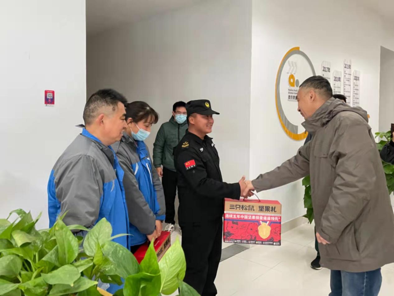 集团总经理程向阳一行先后对园区门岗值班室、体育场消防监控室、体育馆消防监控室、开闭所等区域的一线员工进行慰问。程向阳亲切地与一线员工交谈,询问日常值班和场馆保障相关工作情况,对大家一年来的辛勤工作表示感谢,并叮嘱他们严寒天气注意保暖,保证身体健康,同时鼓励大家在新的一年要继续保持积极进取的奋斗精神。受慰问员工对集团领导的关怀表示衷心的感谢,并表示将努力克服困难,坚守岗位,恪尽职守,保证场馆正常平稳运行。