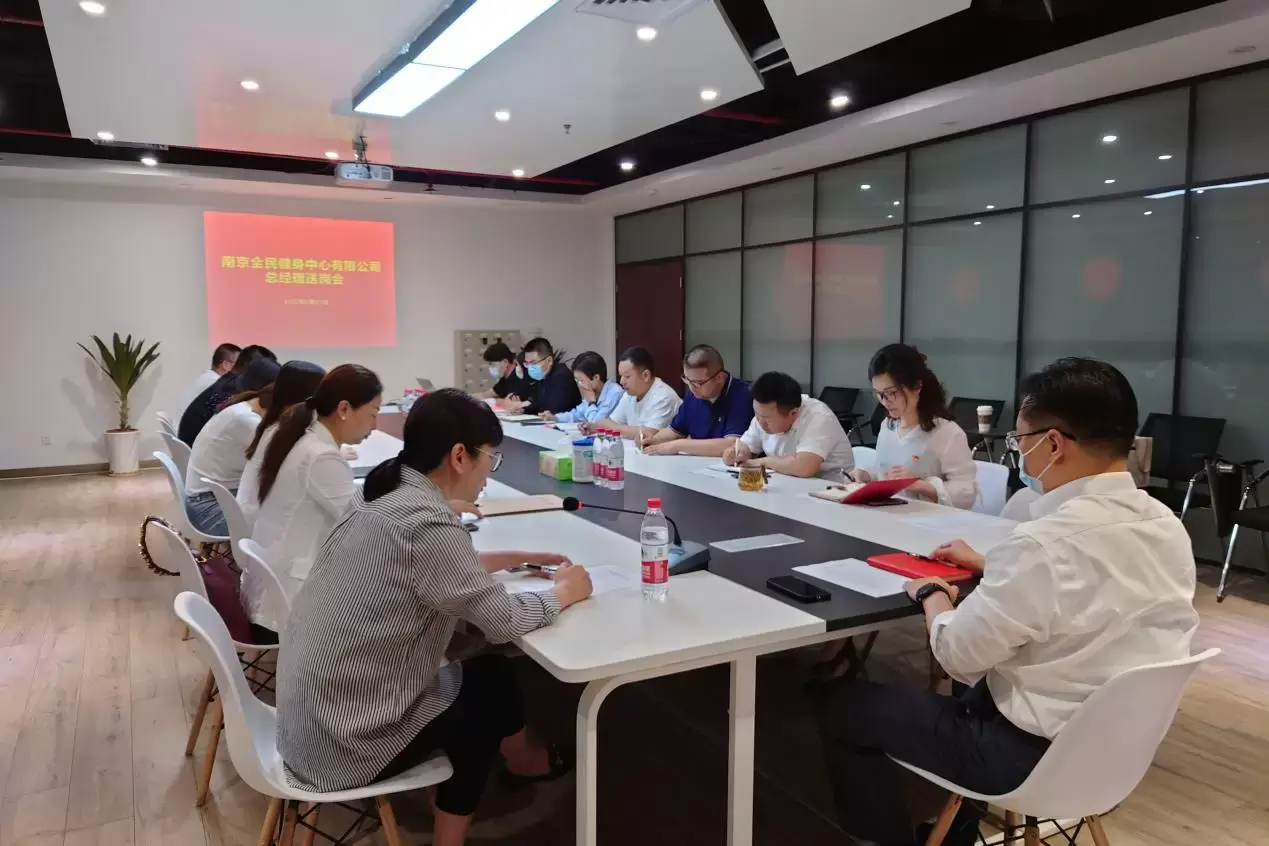2022-05-30 4 5075月27日下午,南京全民健身中心有限公司新任总经理送岗会在全民公司6楼会议室召开。集团党委书记、董事长章小奇,党委副书记王虹燕,副总经理、党委委员王鹏以及党群工作与人力资源部和全民公司、青奥公司中层以上管理人员参加会议。