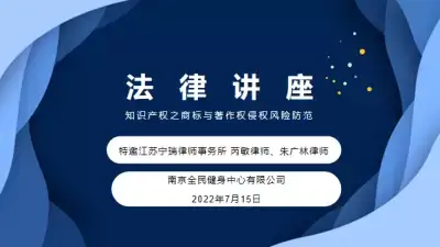 2022-07-17 1 9932022年7月15日上午,全民公司组织开展主题为“知识产权之商标与著作权侵权风险防范”的专题培训讲座,邀请了公司法律顾问、江苏宁瑞律所的芮敏律师、朱广林律师主讲,为公司进一步防范商标与著作权侵权风险提供了法律支撑。