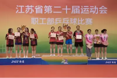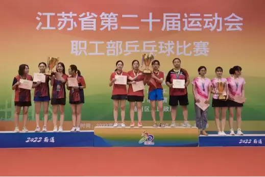 2022-08-18 2 314近日,体育集团高灵飞参加的南京市职工代表队在江苏省第二十届运动会职工部乒乓球比赛上获得青年组女子团体银牌。