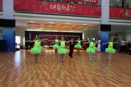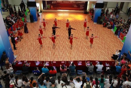 南京全民健身中心有限公司致力于打造“全民健身”品牌,为广大市民健身锻炼提供更好服务,引导科学健身,每年都会针对青少年和老年人策划组织数十场次贴近群众生活的活动。根据南京体育产业集团“季度有主题,唱响四季歌”的要求,全民公司联合南京市体育舞蹈运动协会共同承办了此次展演活动,来自舞蹈艺术学校学生、舞蹈俱乐部和体育舞蹈爱好者共计800多人表演了16个精彩节目。主办方还特邀了12对南京市国标舞的高手,分成三组进行华尔兹、探戈两个舞种的对抗赛,高手们的精彩表现赢得观众的热烈掌声。展演活动的压轴节目是大型集体舞《幸福中国梦》,全部由老年人参演,优美的舞曲、精美的服装、整齐划一的动作,充分展现了老年人老有所乐、健康向上的生活风貌,把整场活动气氛推向最高潮。