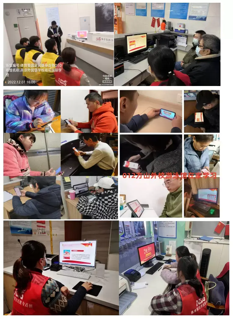 在体育集团党委号召下,全民公司党支部第一时间组织党员积极参与学习“学习强国”,11名在编党员、1名编外党员、入党积极分子及群众通过PC端和手机客户端每天坚持学习打卡、“充电加油”,工作之余充分利用时间
