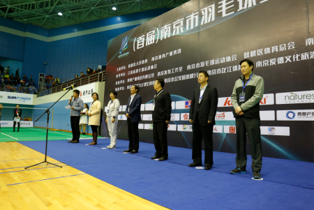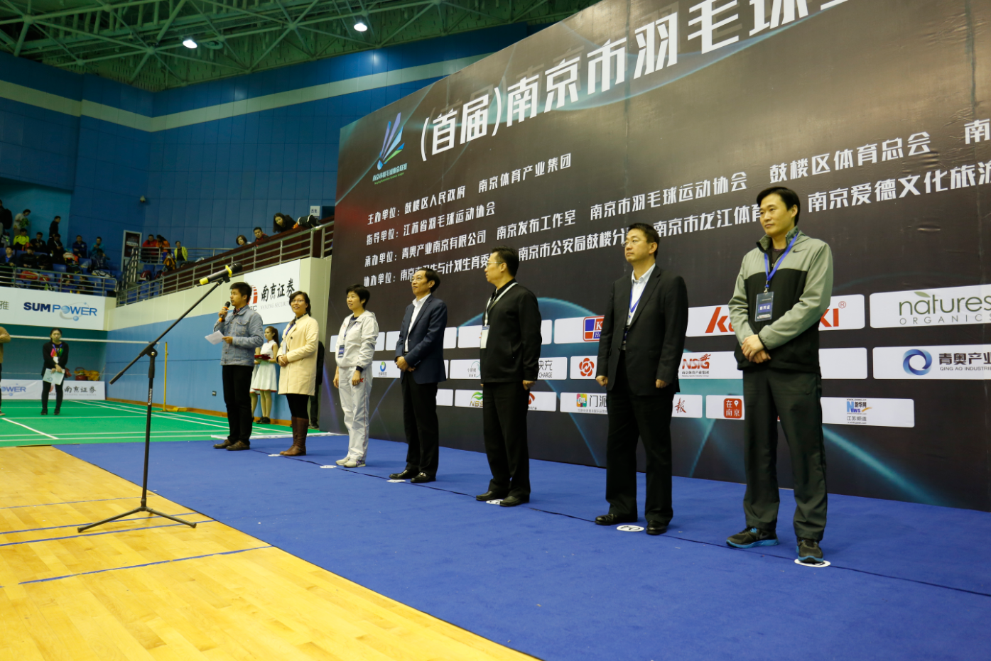 10月29日上午,(首届)南京市羽毛球业余联赛正式拉开帷幕。此次比赛由鼓楼区人民政府、南京体育产业集团主办,青奥产业南京有限公司、南京发布工作室、南京市羽毛球运动协会、鼓楼区体育总会、南京界内体育科技有限公司联合承办。开幕式上,鼓楼区委常委、宣传部长、副区长梁春燕女士致欢迎辞,南京体育产业集团董事长章小奇先生代表本次赛事组委会致辞,运动员代表和裁判员代表分别代表全体运动员和裁判员宣誓,最后由南京市人民政府张强副秘书长宣布比赛开幕,各界领导为此比赛开球。