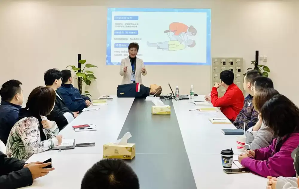 会议首先由南京疾病防控与安全应急中心讲师武凤开展培训讲座,武老师结合工作和生活中常见的意外事件,详细介绍了心肺复苏、AED自动除颤仪等急救方法及设备使用程,并指导员工进行实操演示;从“合理膳食、适量运动、心理平衡、定期检查”等四个方面指导员工如何改善身体健康;科普了常见疾病的相关知识,提醒大家做好疾病预防,关爱员工生命安全。