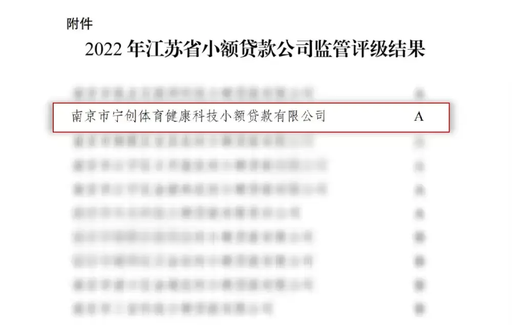 2023-05-22 6 800近日,江苏省地方金融监督管理局公布了2022年江苏省小额贷款公司监管评级结果,体康科贷在全省444家小额贷款公司中获评行业监管评级最高等级A级。此项荣誉是金融监管部门对公司规范经营、风险防控、稳健发展等各项工作成效的肯定与认可。