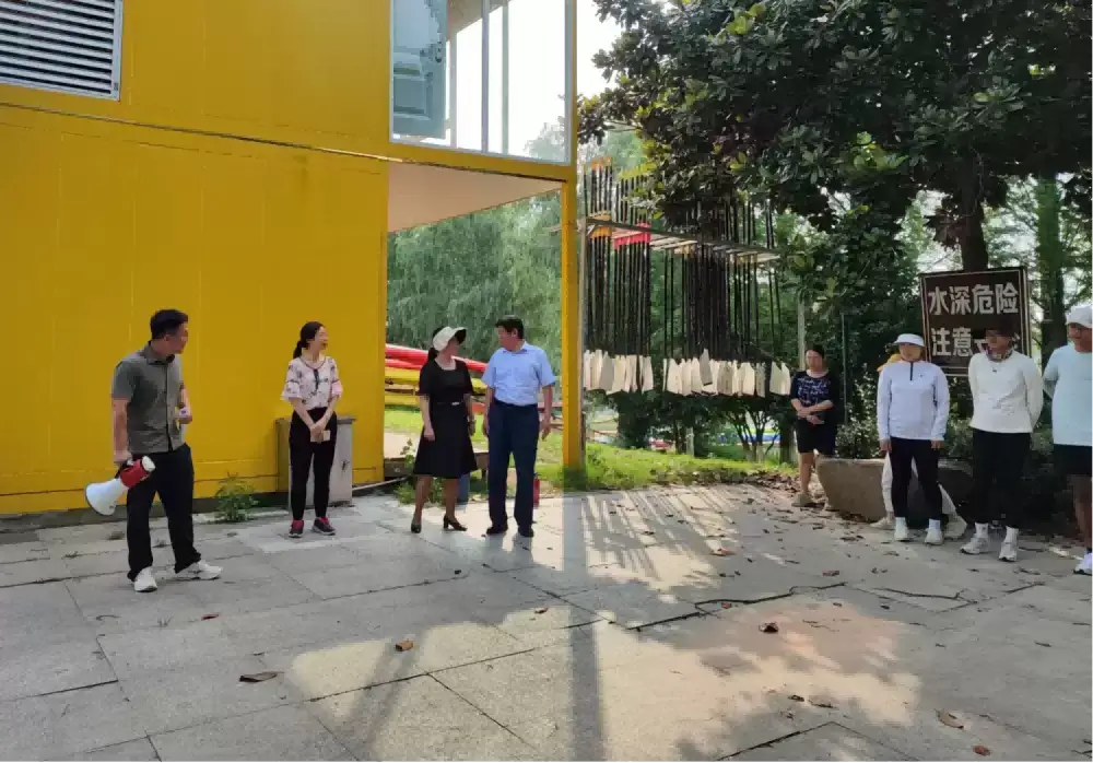 集团总会计师王璎前往青奥水上运动中心羊山湖基地,了解水上游乐项目救生保障,并指导消防及溺水救护应急演练。