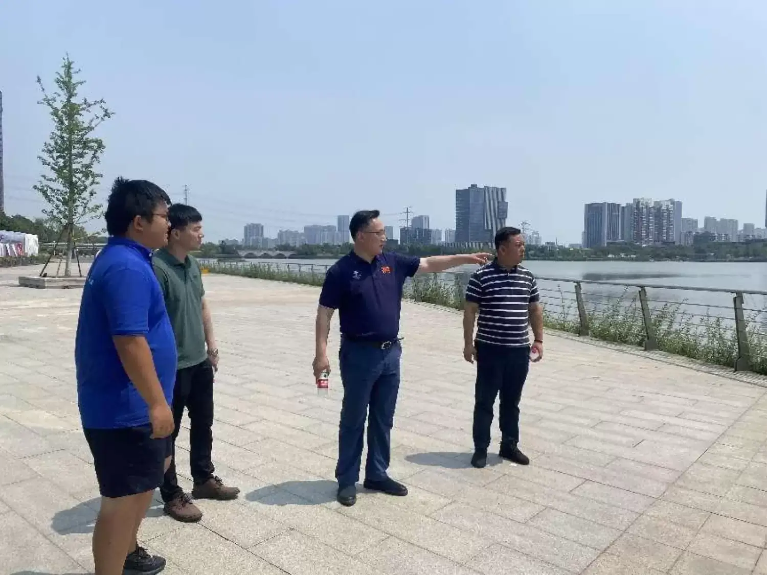 集团副总经理王鹏来到青奥水上运动中心九龙湖基地,深入了解水上游乐项目应急预案、救生保障等情况。
