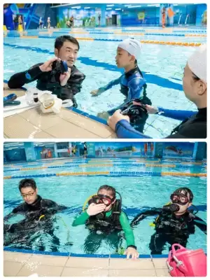 活动伊始,专业教练通过一个个有趣的小故事向孩子们讲解潜水运动的安全注意事项,并对救生衣穿戴、水下自护自救等事项进行了详细的演练,并示范了水下求生、心肺复苏等正确急救方法。“如果陷入到这种困境中,我们应该怎么办呢?有没有小朋友知道?”“我觉得应该......”孩子们积极踊跃回答问题,既活跃了现场气氛,又提高了孩子们的综合素质。