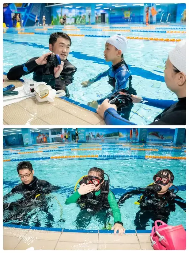 “妈妈你看!我现在和小美人鱼公主一样能去水里游泳了!”“哇!这个鱼尾好漂亮呀!”“妈妈,我有它就可以潜水啦!”在安全知识宣讲结束后,孩子们纷纷穿上提前准备好的“美人鱼”鱼尾,红扑扑的脸上“挂”满了兴奋,迫不及待地向站在一旁的爸爸妈妈展示。美人鱼、自由潜、水肺潜水运动轮番上演,在教练耐心教导下,孩子们化身“小小潜水员”,成为海洋大使。“很感谢有这么一次特别的机会,能让孩子体验潜水,他很喜欢。”家长说道。活动结束,大家一起拍照留念,用相机记录美好时刻。