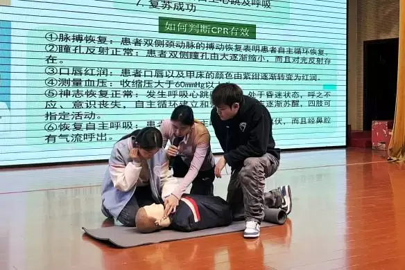 除了主题宣讲以外,本次交流活动还邀请了公司明星教练进行心肺复苏现场的演示教学和有奖知识竞答,现场气氛热烈,在场学生均表示收获满满。