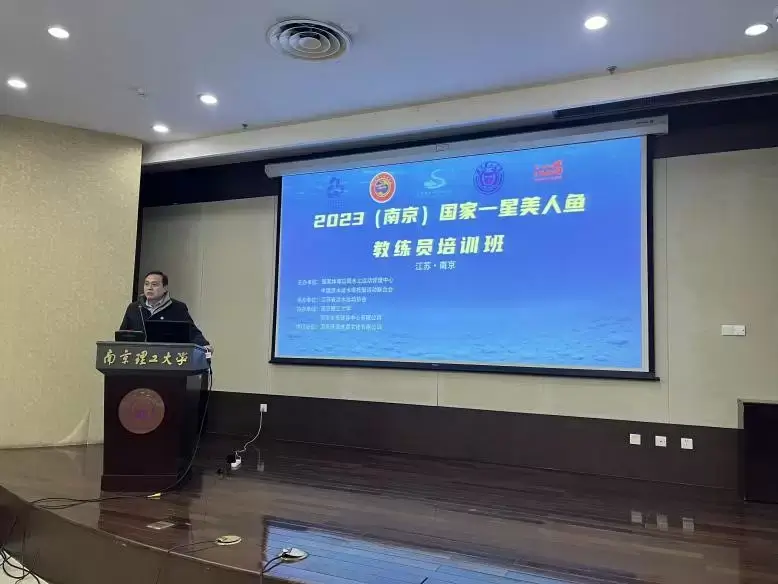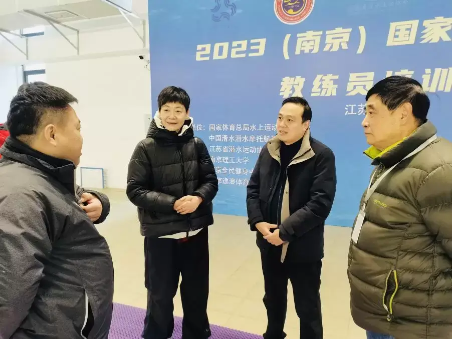 2023-12-14 5 18812月7日-12日,国家一星美人鱼教练员培训班暨潜水员紧急救护技术交流会在体育产业集团全民健身连锁旗下场馆南京理工大学游泳馆举办。本次培训由国家体育总局水上运动管理中心、中国滑水潜水摩托艇运动联合会主办,江苏省潜水运动协会承办,南京理工大学、南京全民健身中心有限公司共同协办。江苏省潜水运动协会秘书长蒋云、南京理工大学国资处副处长、场馆管理中心主任李帅等相关领导出席开班仪式并发表讲话。
