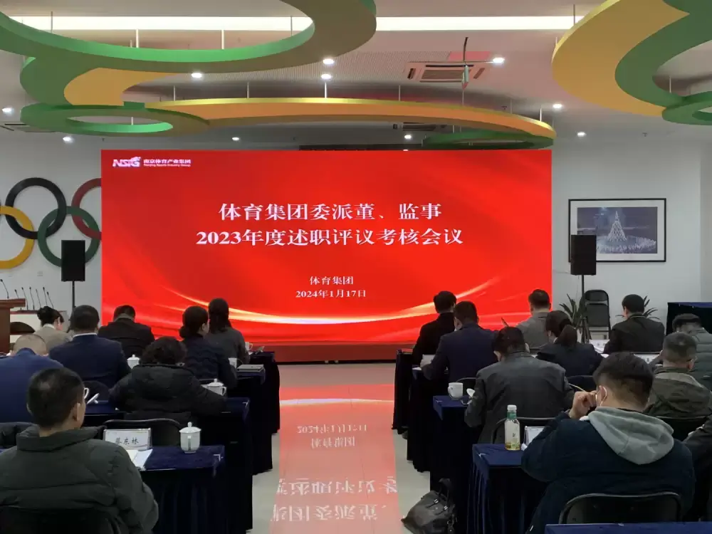 2024-01-22 1 9591月17日下午,体育集团组织召开2023年度子企业委派董、监事述职及民主评议大会。集团领导班子成员、各部门负责人、子企业班子成员参加了本次会议。