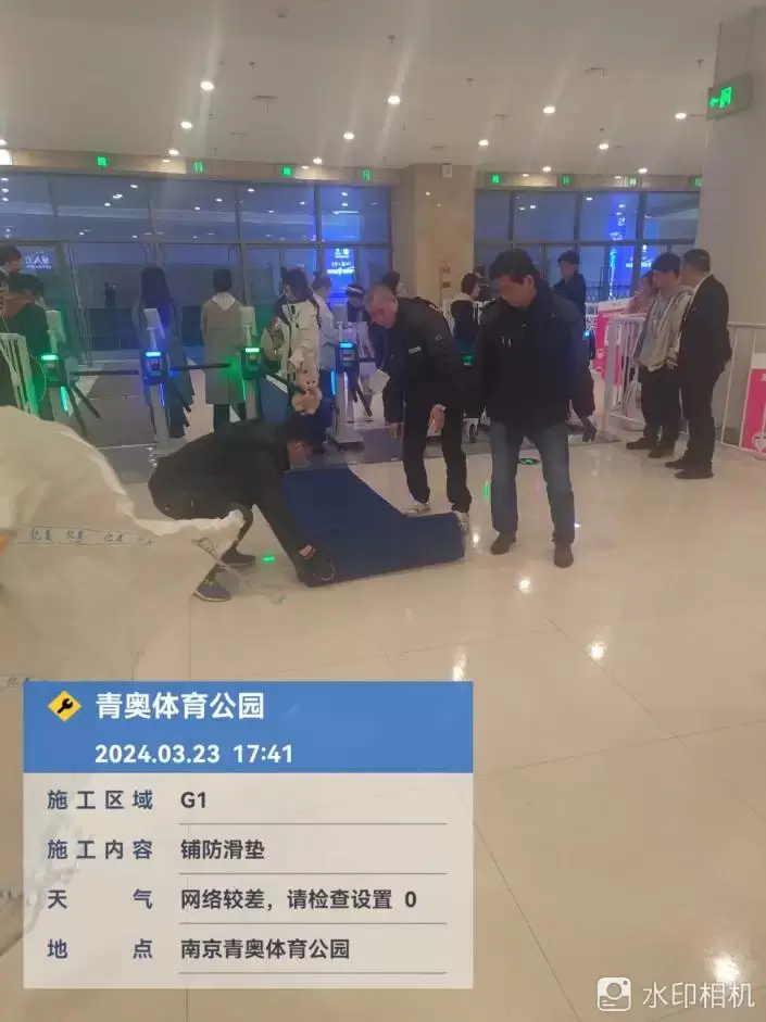 由于天气降雨,场馆工作人员对于安全防护工作格外重视,他们及时清理了各个出入口的积水,铺设了防滑地垫,保障观众们的安全。同时,场馆工作人员们积极引导观众有序入场,耐心地解答观众的疑问,以确保每一位观众都能享受到最佳的观演体验。