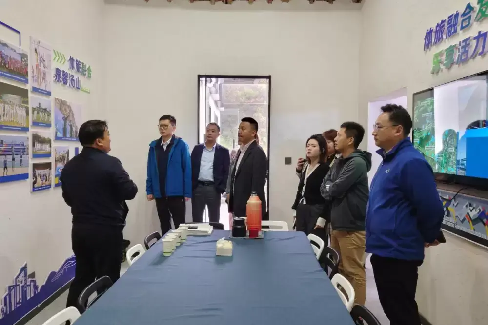 调研一行人先后来到2023“绿水青山”中国休闲运动挑战赛的举办地—汤北户外运动聚区(青奥绿馆)及安基湖水域进行实地勘察并开展座谈交流。座谈会上,体育集团及汤山街道负责人分别就体育集团在汤山的产业布局情况及汤山体育资源禀赋利用进行了简要介绍,并就体育产业链布局打造、中高端体育赛事管理运营及自然资源与体育产业融合发展等进行深入探讨。
