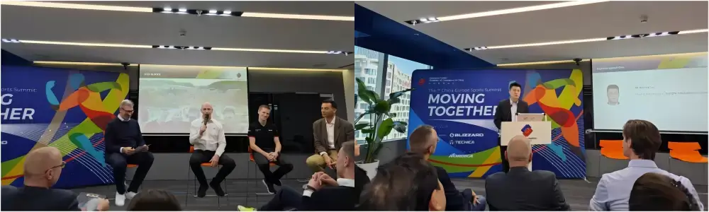 团队随后赴中国欧盟商会上海分会参加第一届中欧体育峰会,近百名中欧体育企业代表、体育专家学者和政府领导出席此次峰会。