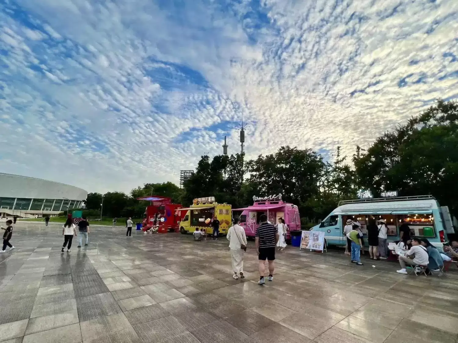 除了周到的志愿服务,青奥场馆还积极听取观众需求,在场馆外安排了美食市集。市集上,外形新潮吸睛的露营车吸引了大量观众前来光顾打卡,各种美食应有尽有,满足了不同口味的需求,也让这场演唱会的消费体验更加丰富多彩。