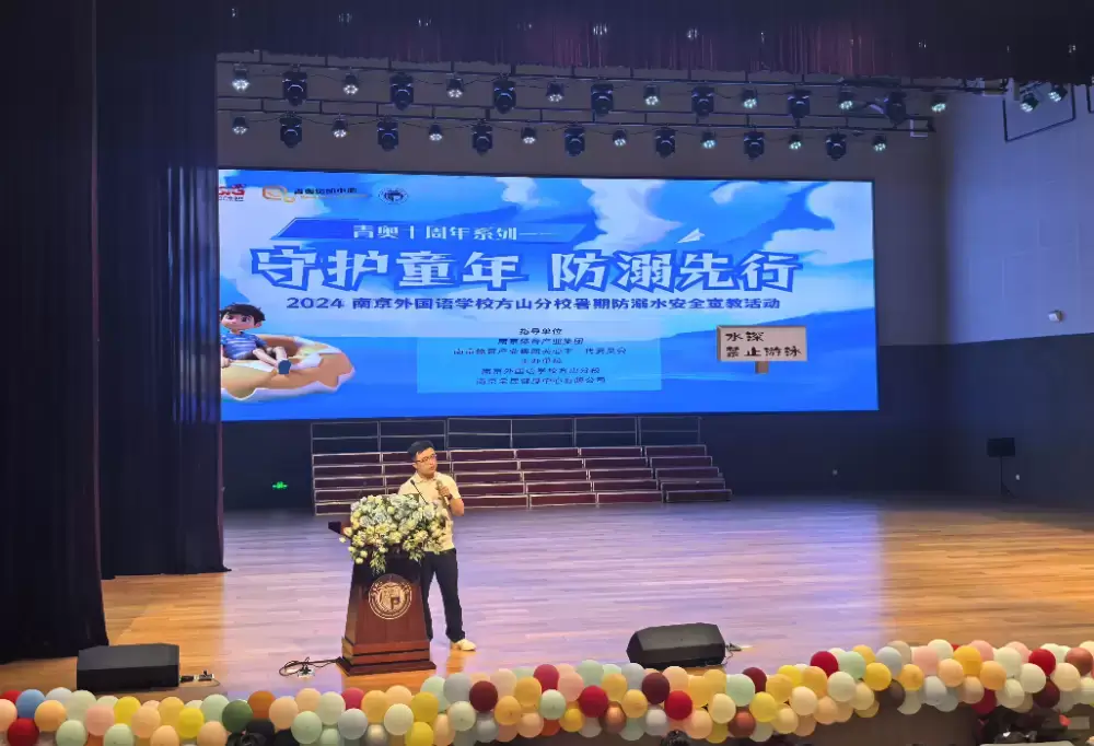 2024-06-7 3 178“小朋友们,在野外遇到水塘,如果不小心掉下去你们知道该如何做吗?”……6月5日下午,由南京体育产业集团指导,南京外国语学校方山分校(以下简称“南外方山分校”)、南京全民健身中心有限公司(以下简称“全民公司”)联合主办的“青奥十周年系列 ‘守护童年 防溺先行’”暑期防溺水安全宣教活动在南外方山分校千人剧场开讲。现场共召集了400余名二年级学生参加。