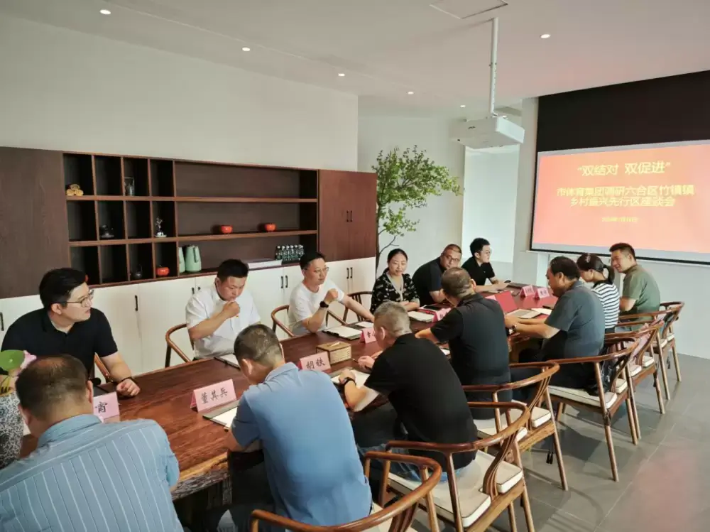 座谈会上,调研组听取了竹镇镇关于乡村振兴先行区工作情况和亮点项目的介绍,与会人员围绕文体旅产业发展现状,体育如何更好融入乡村振兴以及相关合作细节进行了深入探讨。