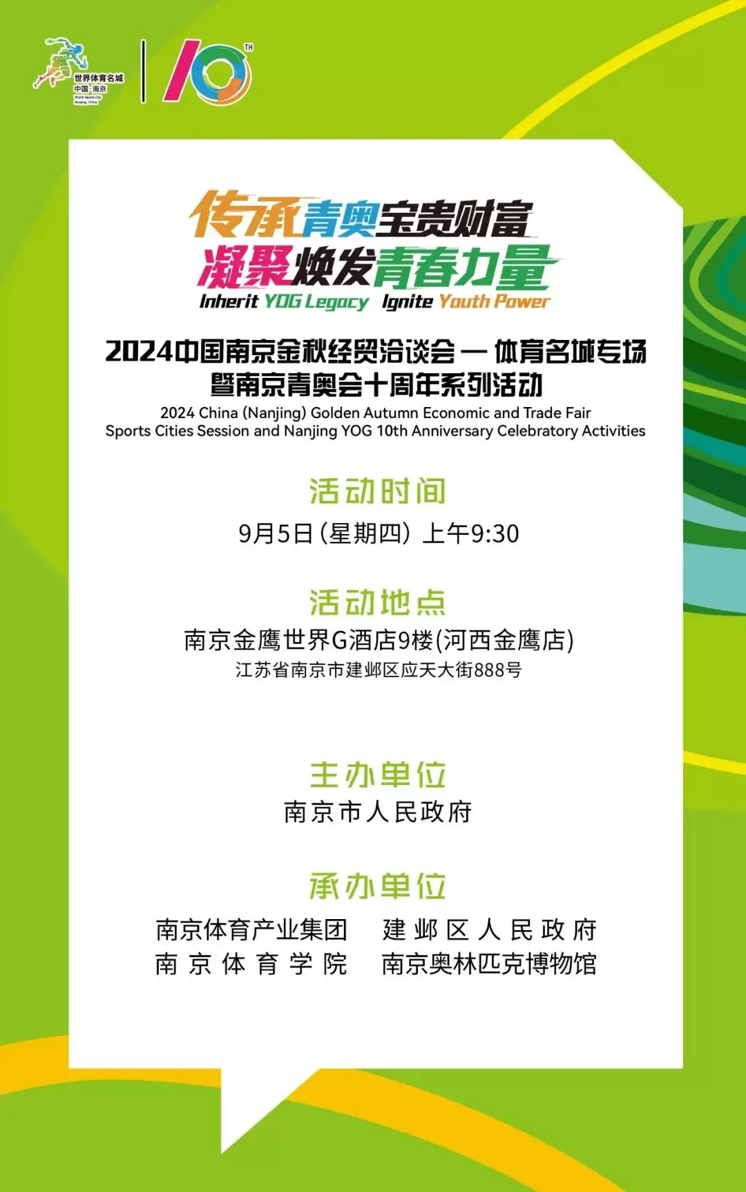 传承青奥宝贵财富 凝聚焕发青春力量|2024中国南京金秋经贸洽谈会-体育名城专场暨南京青奥会十周年系列活动即将启幕