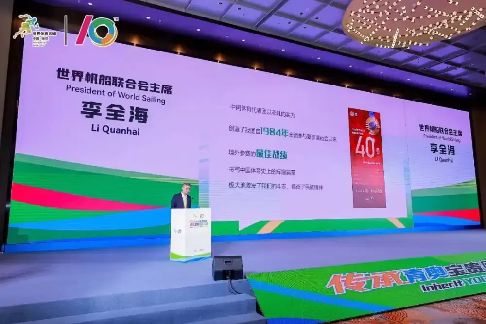 世界帆船联合会主席李全海围绕《十年金陵扬帆缘——从青奥到后奥,南京水上运动正当时》主题,回顾了2014年青奥会帆船赛事筹备情况,肯定了南京促进奥林匹克运动可持续发展方面所取得的丰硕成果,展望并祝愿南京水上运动事业发展大有可为。